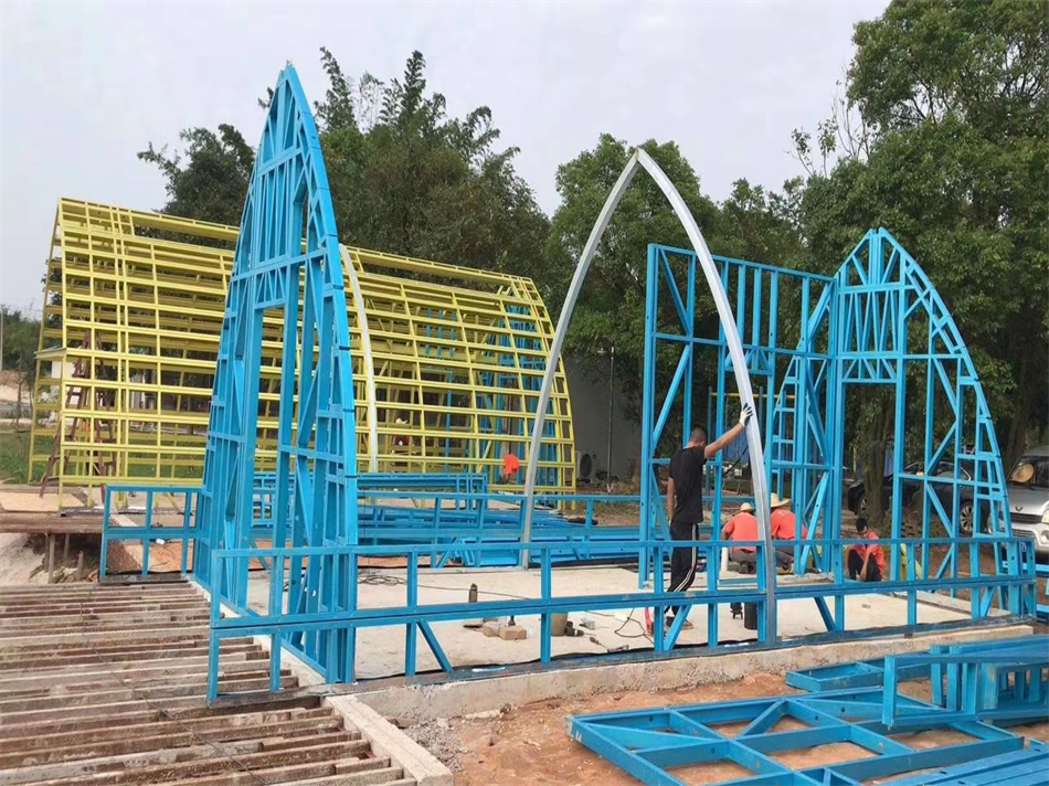 如下圖所示,憑借著自重輕的特性,再復(fù)雜的層疊造型輕鋼別墅也能輕易做到